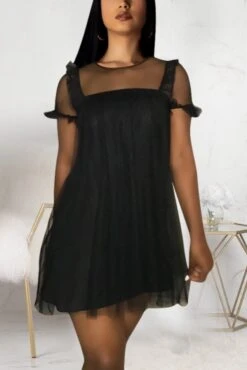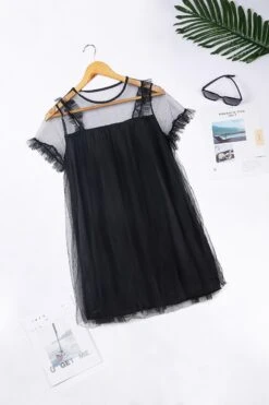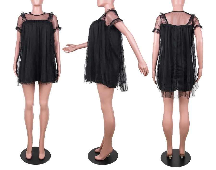 Summer plus size see through mesh spliced stretch stylish mini dress