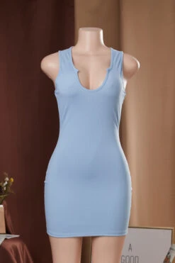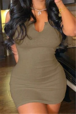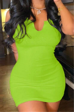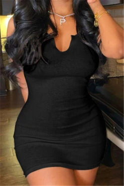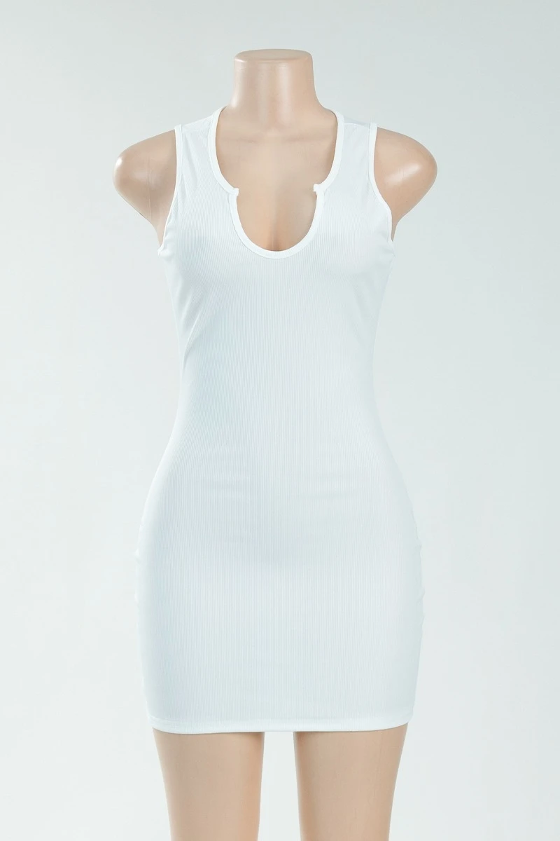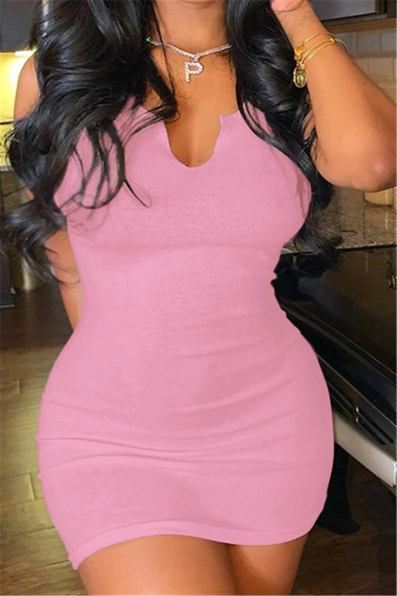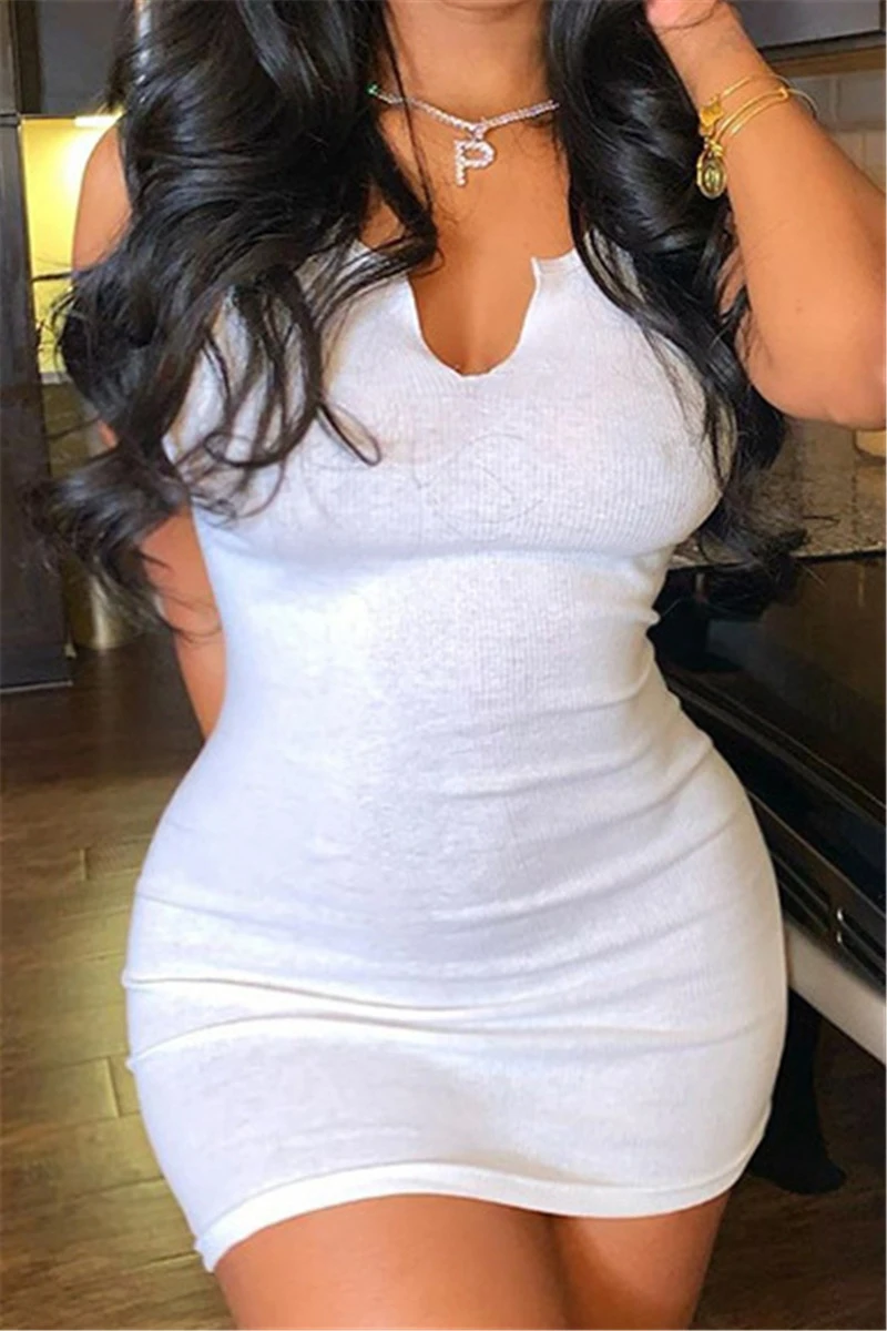 Summer plus size solid color stretch low-cut sexy simple hot bodycon dress