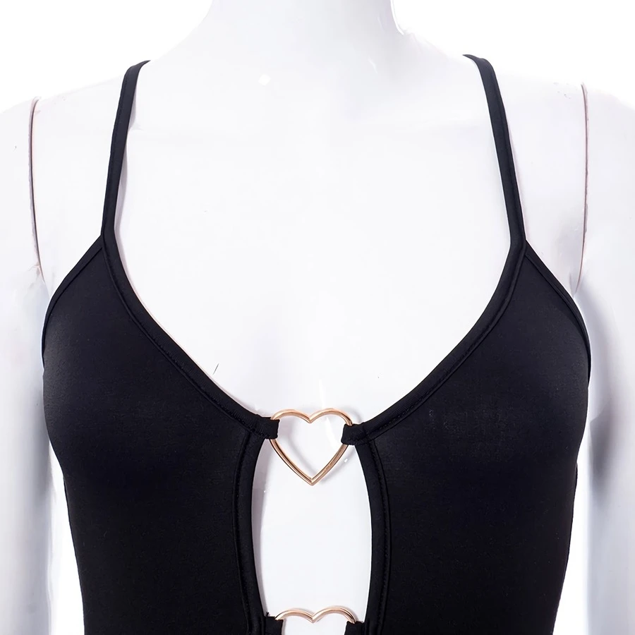 Summer solid color heart shape cutout stretch slim mini dress