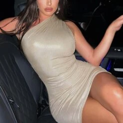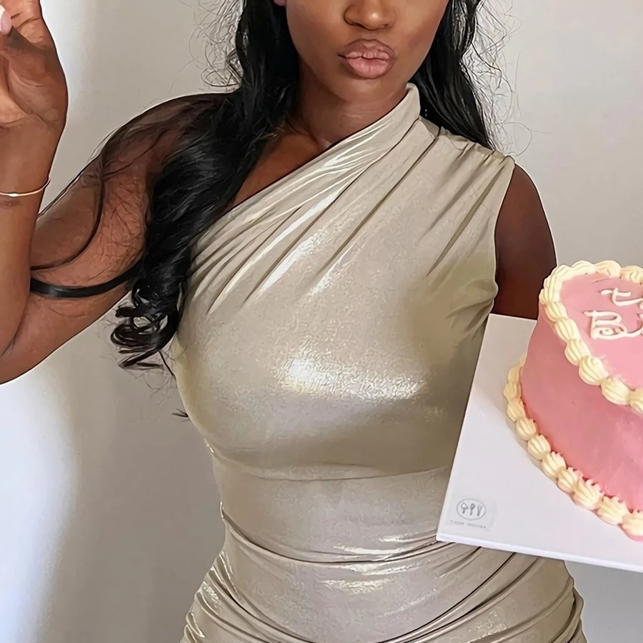 Summer two colors high stretch one shoulder shirring sexy bodycon mini dress