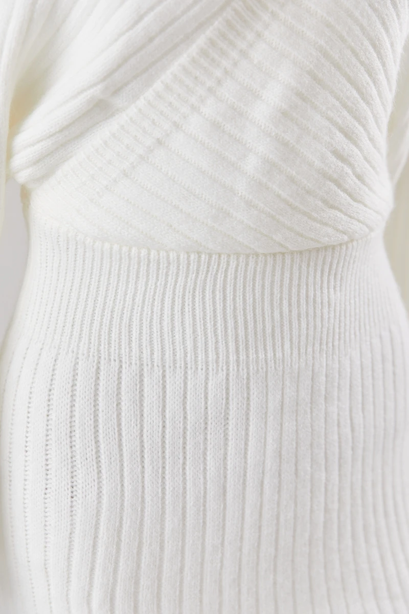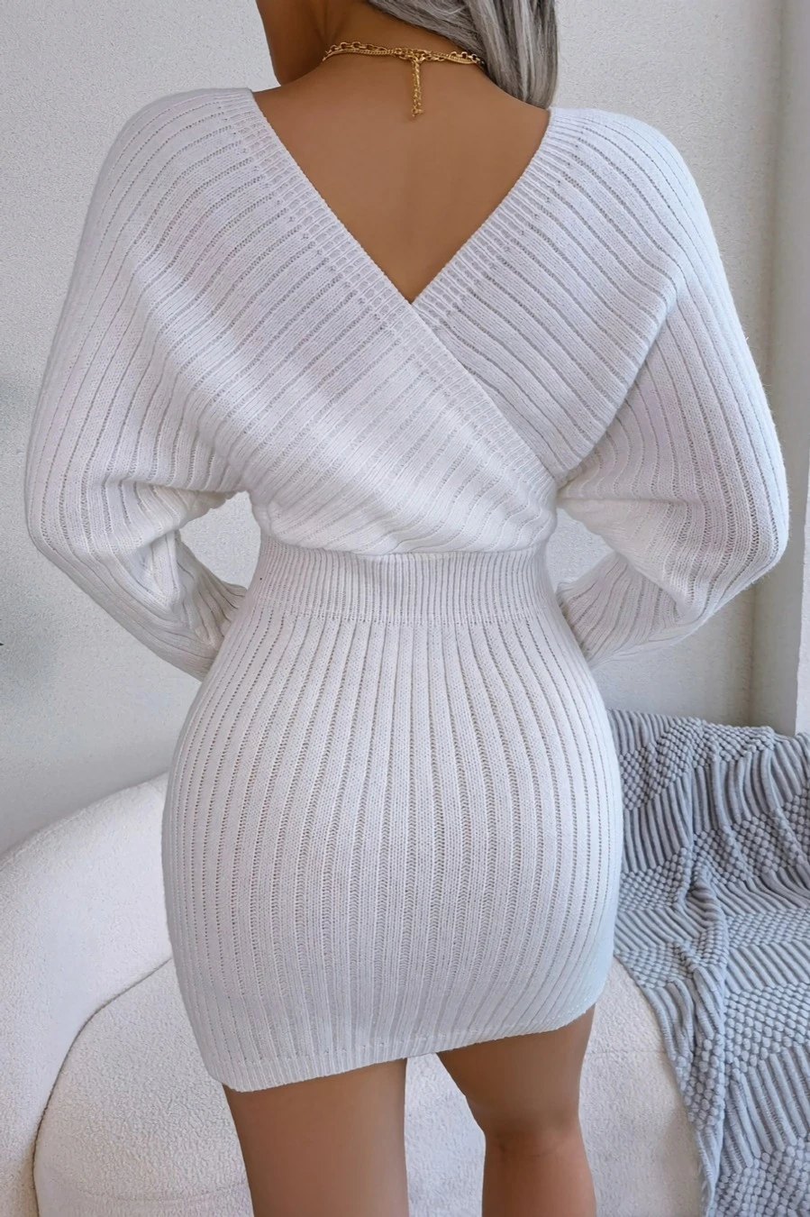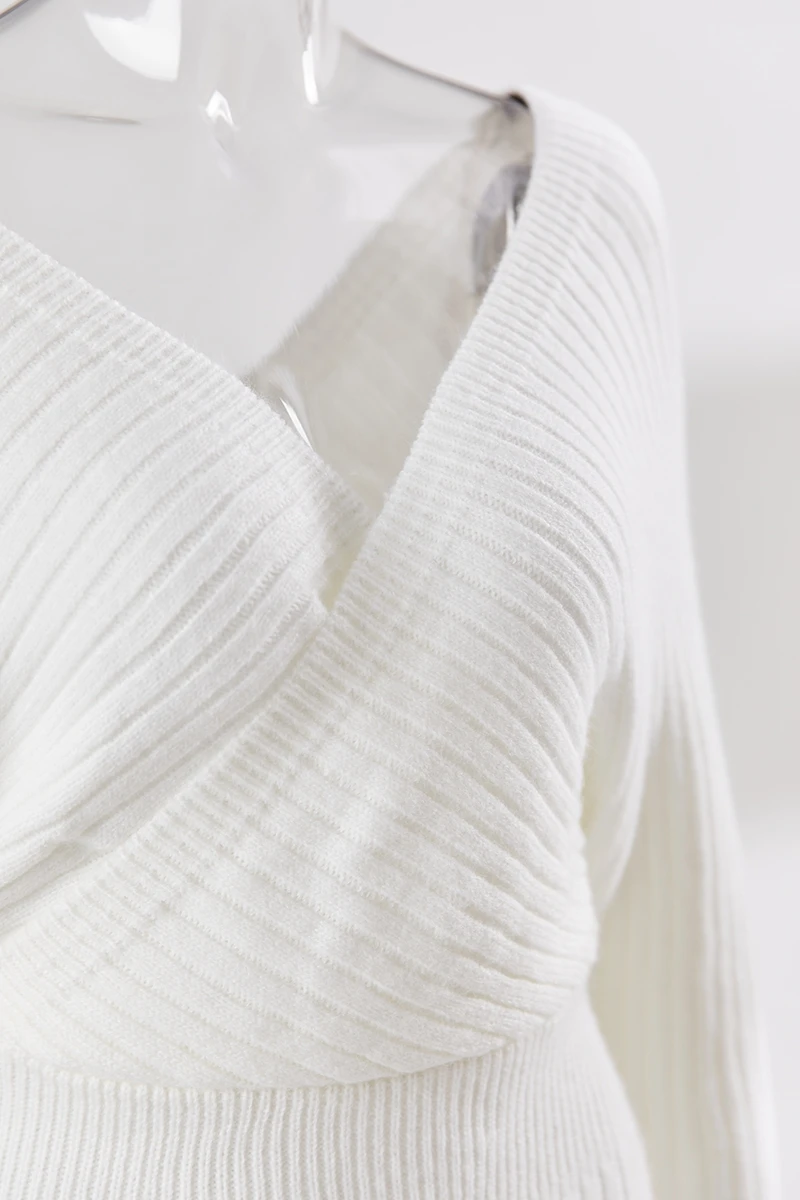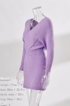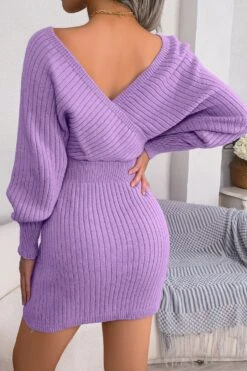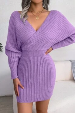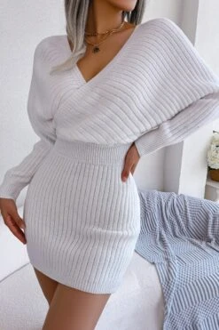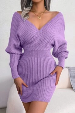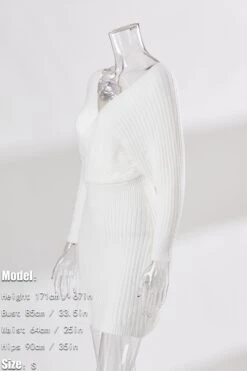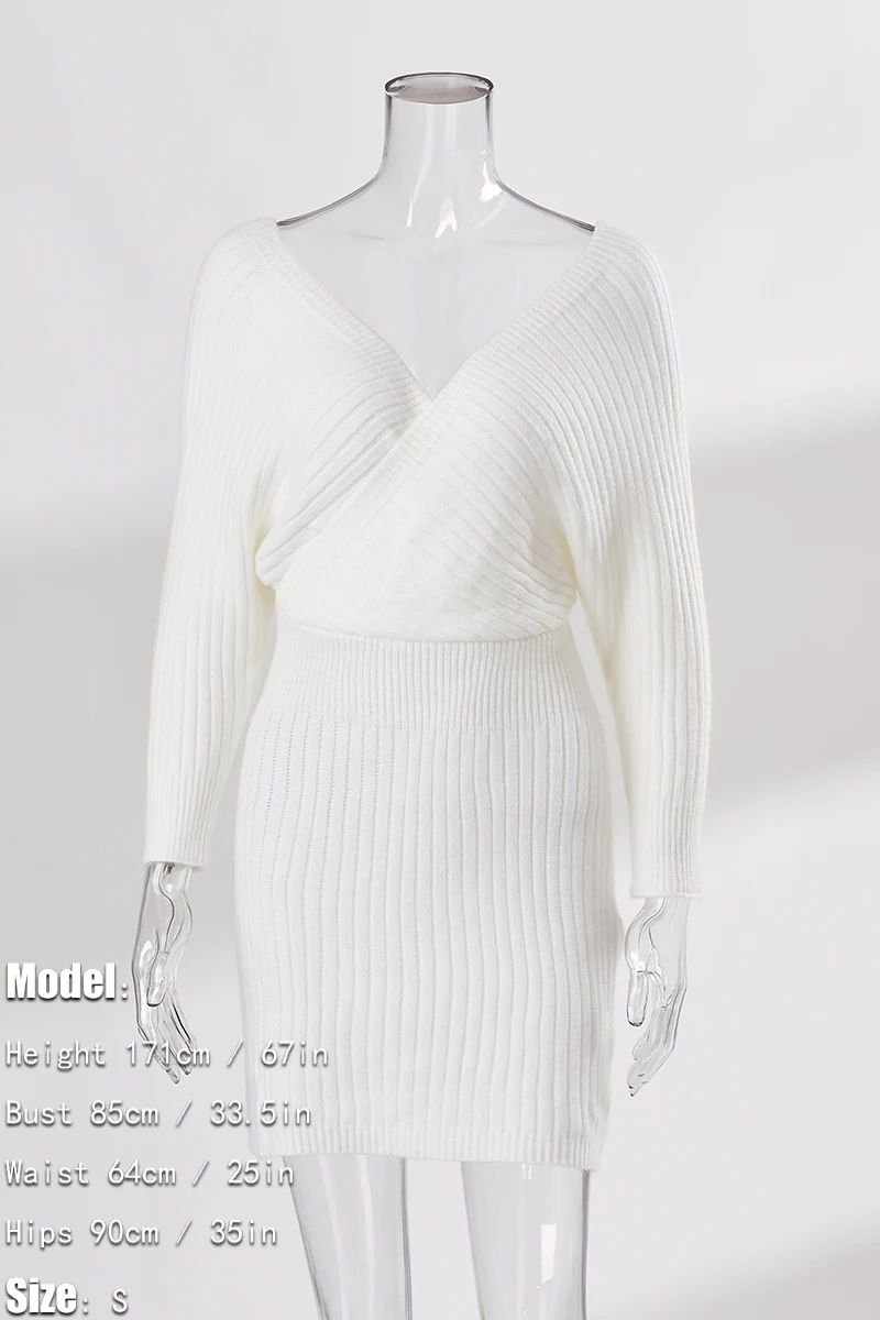 Two colors knitted slight stretch sexy bodycon mini sweater dress