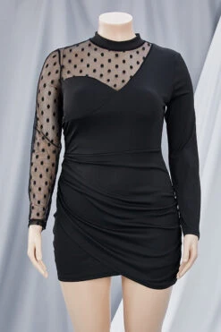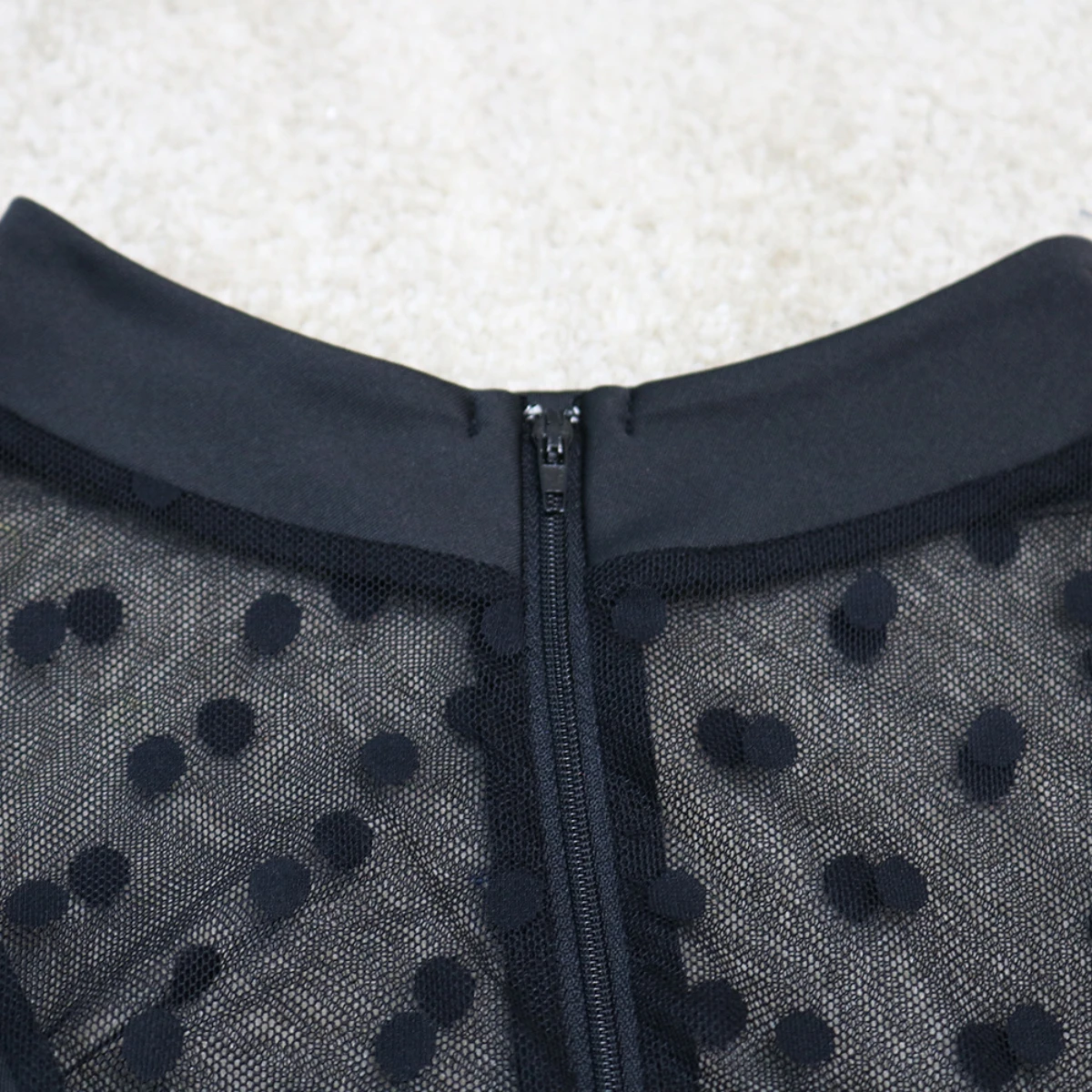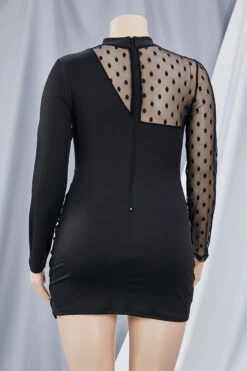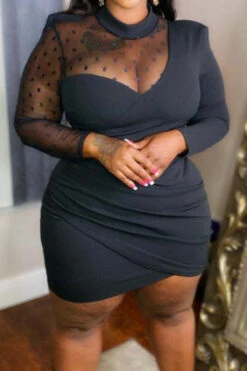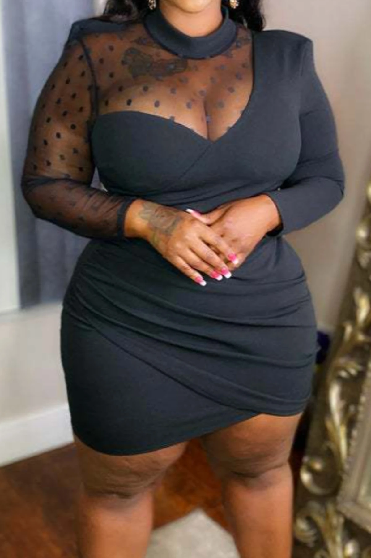 XL-5XL autumn new see through mesh spliced stretch zip-up back irregular sexy mini dress
