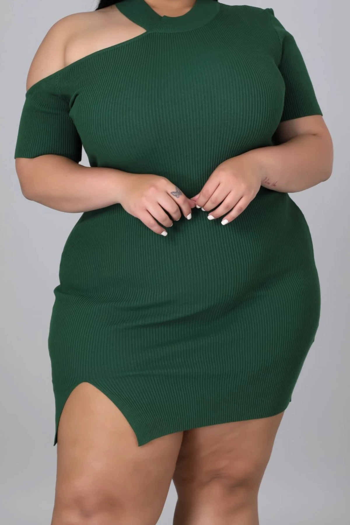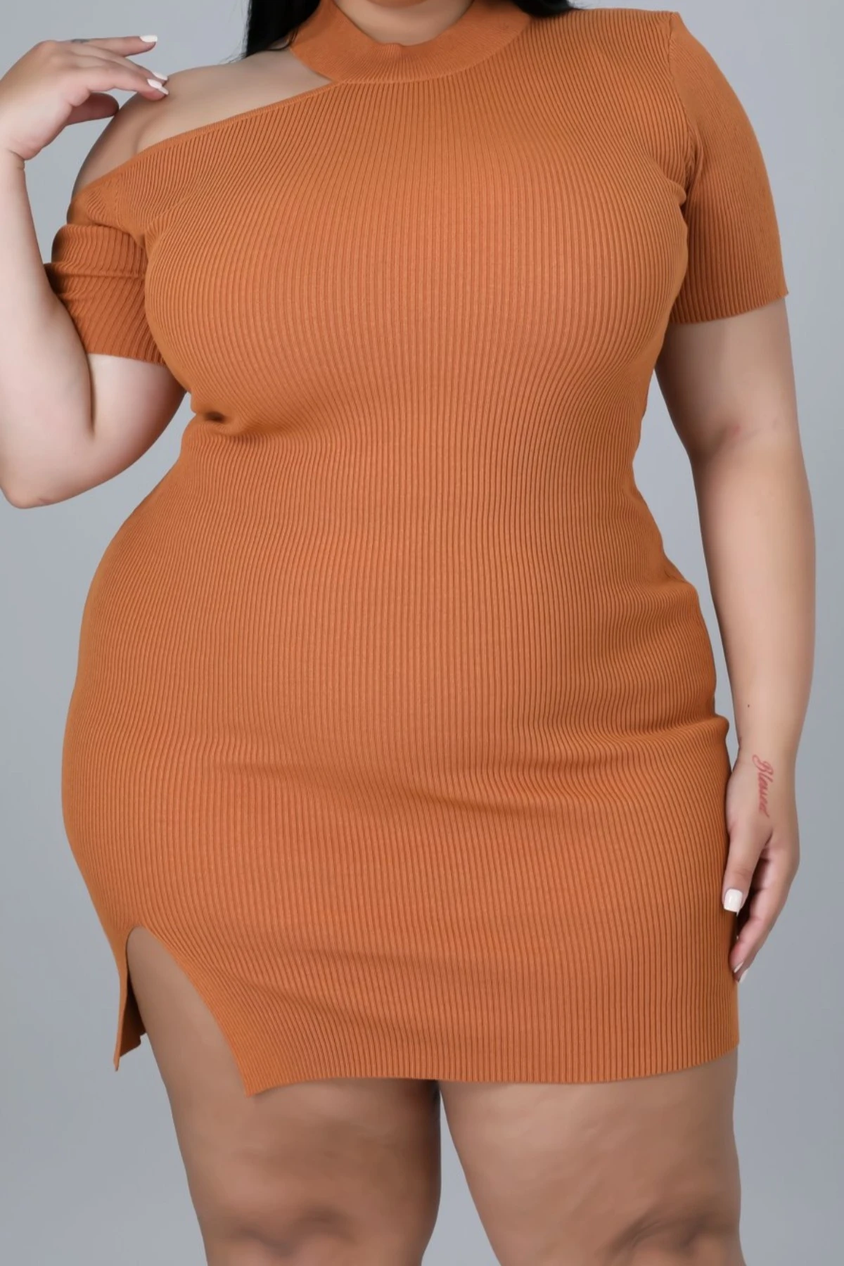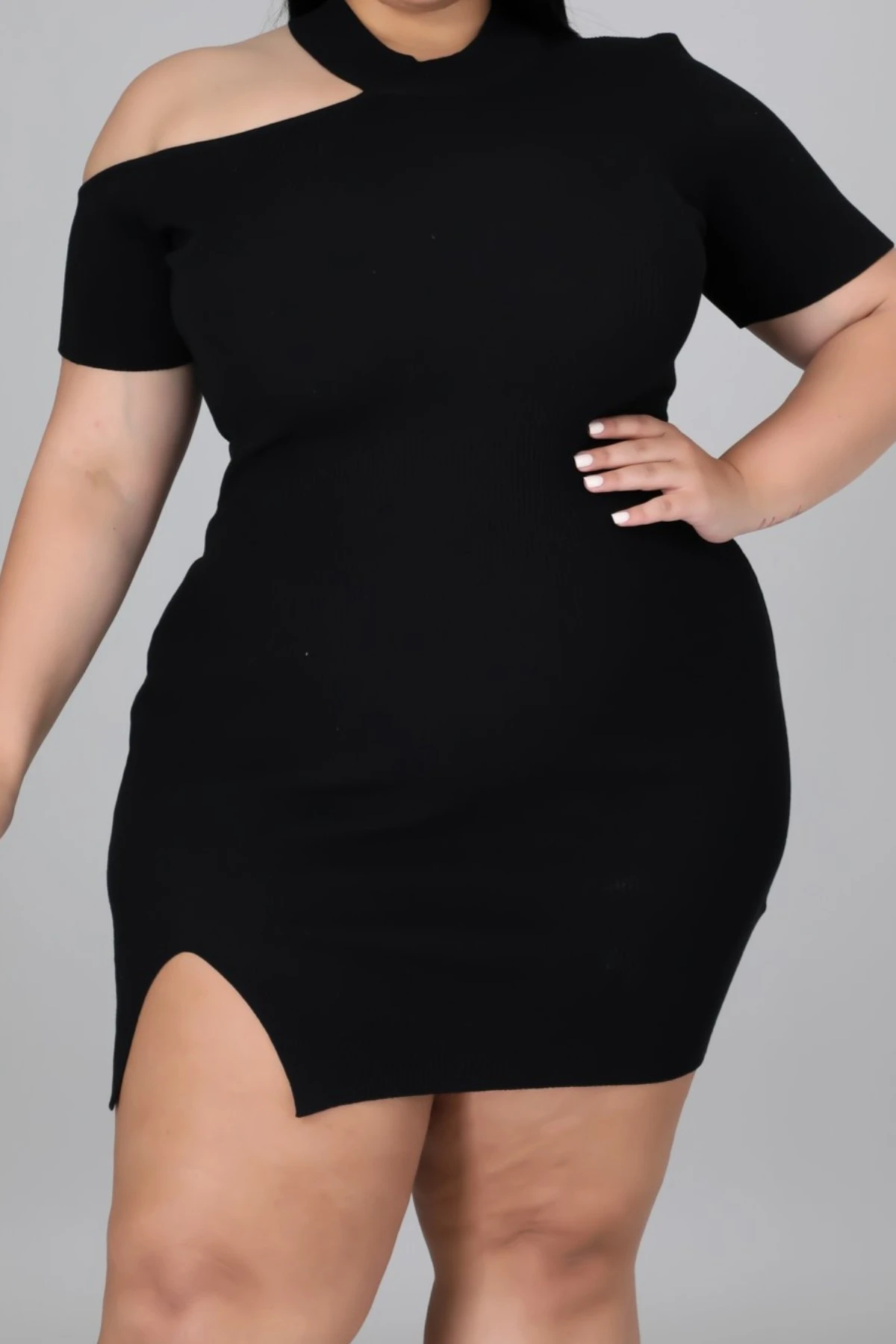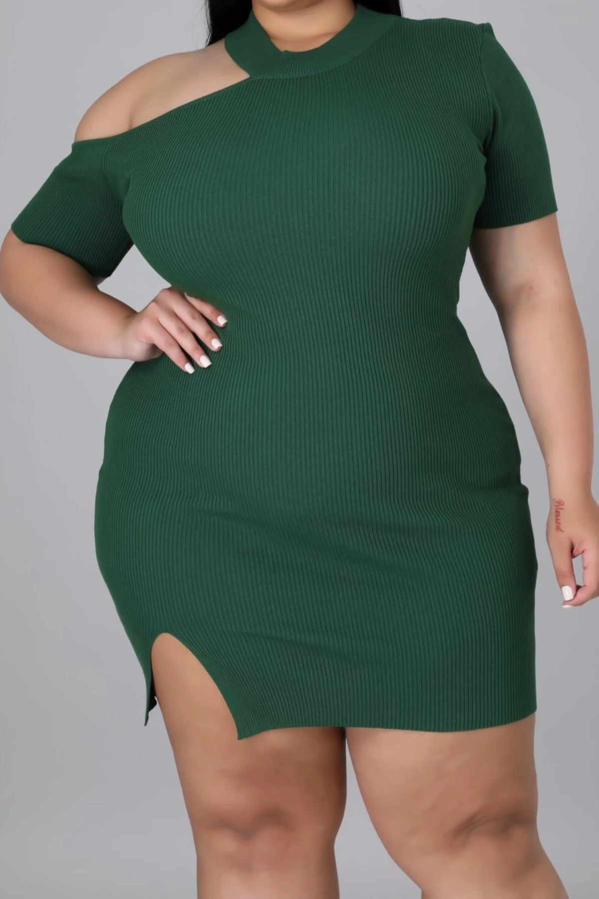XL-5XL new ribbed knitted stretch hollow low-slit stylish mini dress