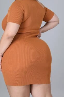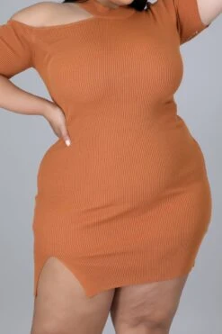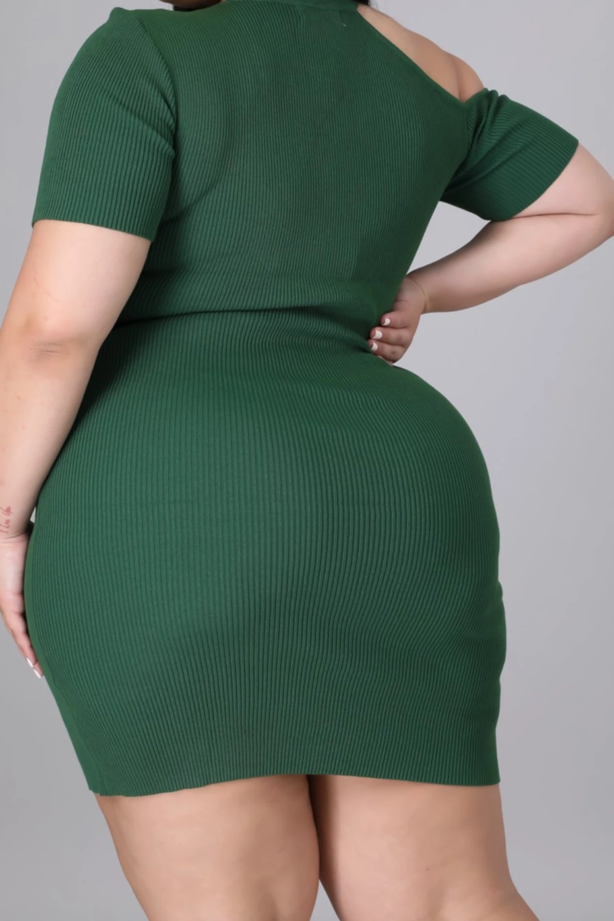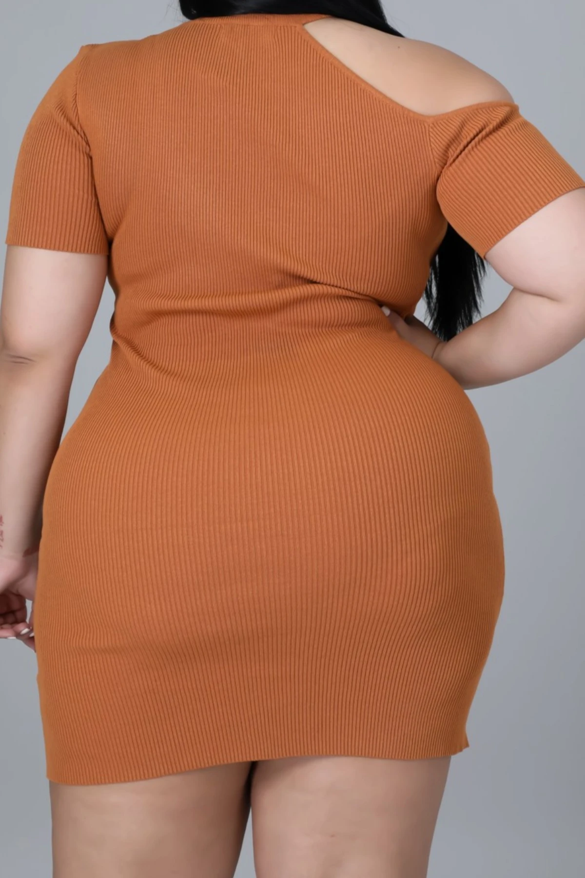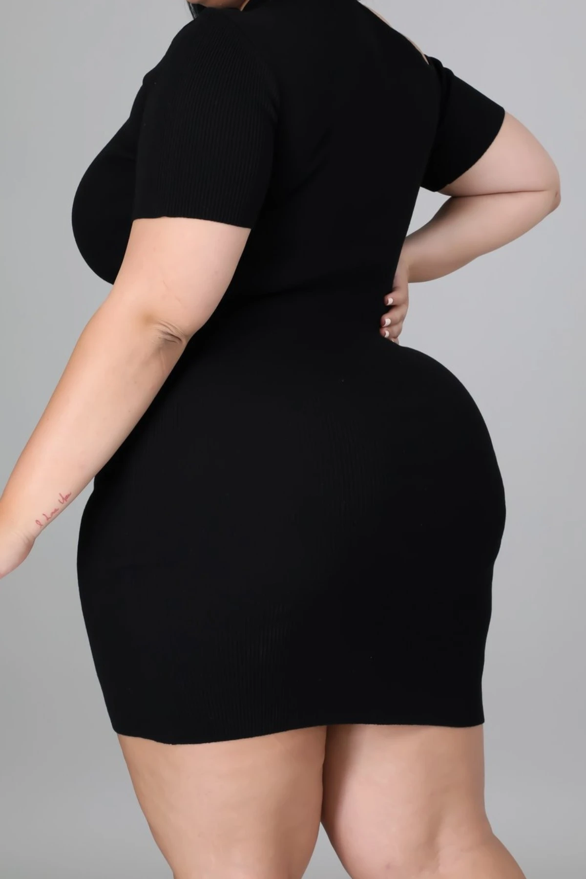 XL-5XL new ribbed knitted stretch hollow low-slit stylish mini dress