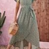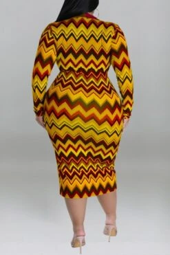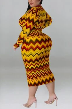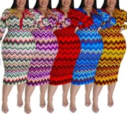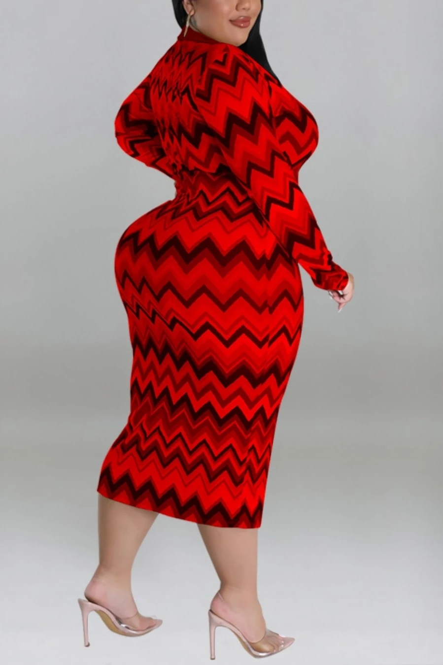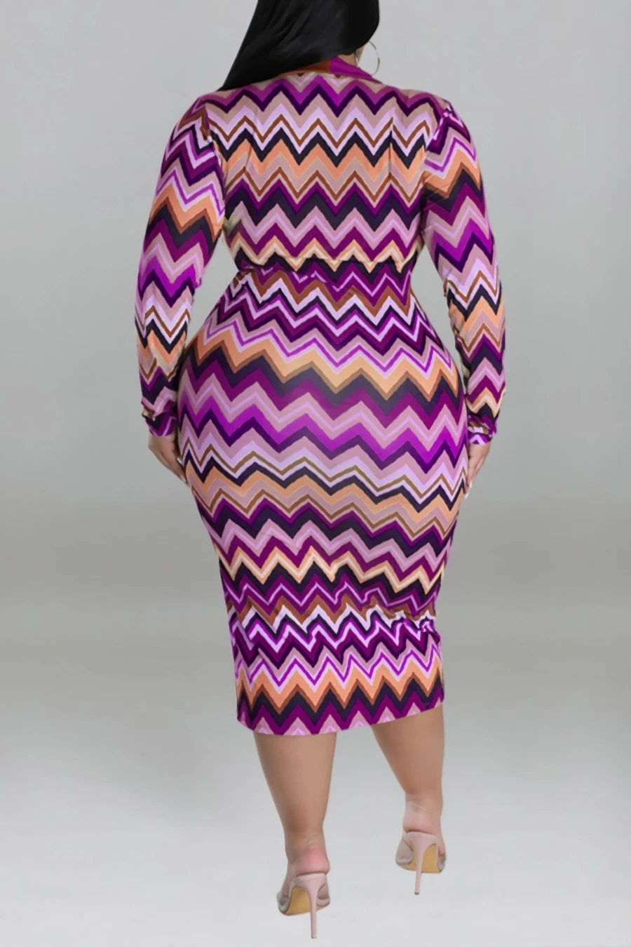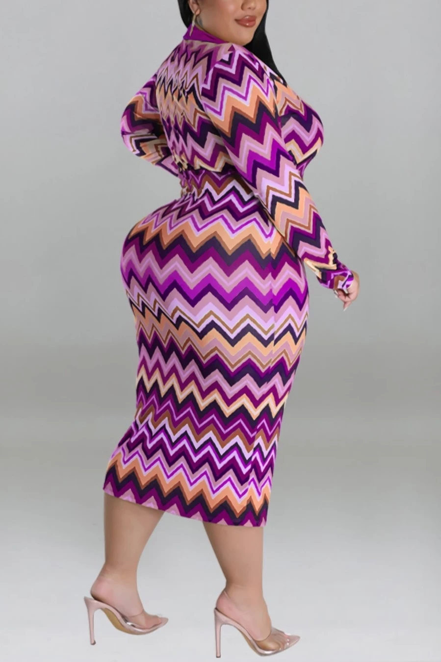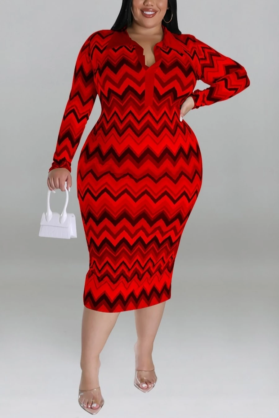 XL-5XL plus size autumn new 5 colors wave printing stretch long sleeves stylish midi dress