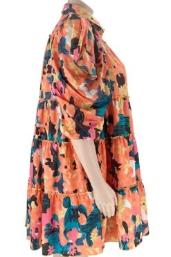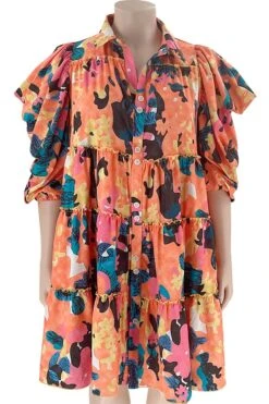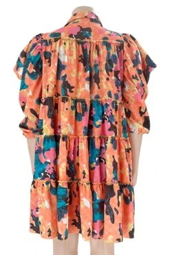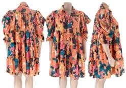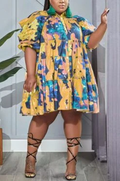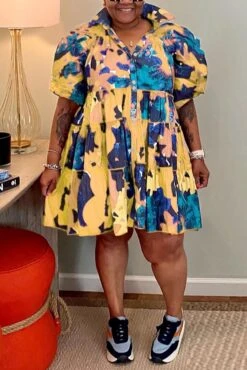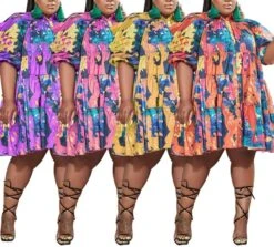 XL-5XL plus size summer new stylish 4 colors graffiti batch printing slight stretch single breasted loose pleated casual midi dress
