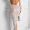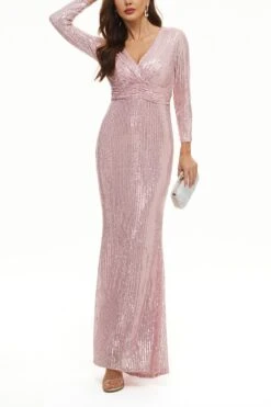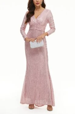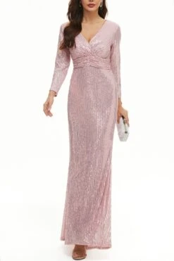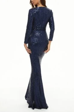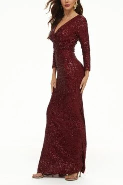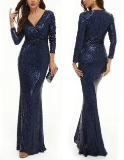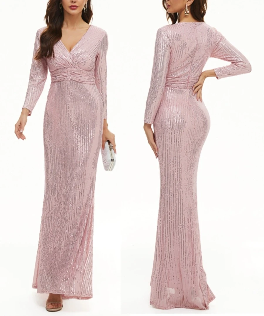 XS-3XL plus size new stylish 3 colors slight stretch zip-up sequins high quality elegant maxi dress(with lined)
