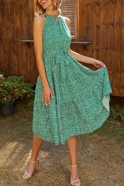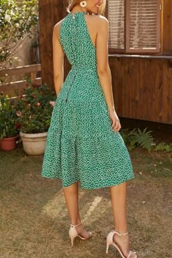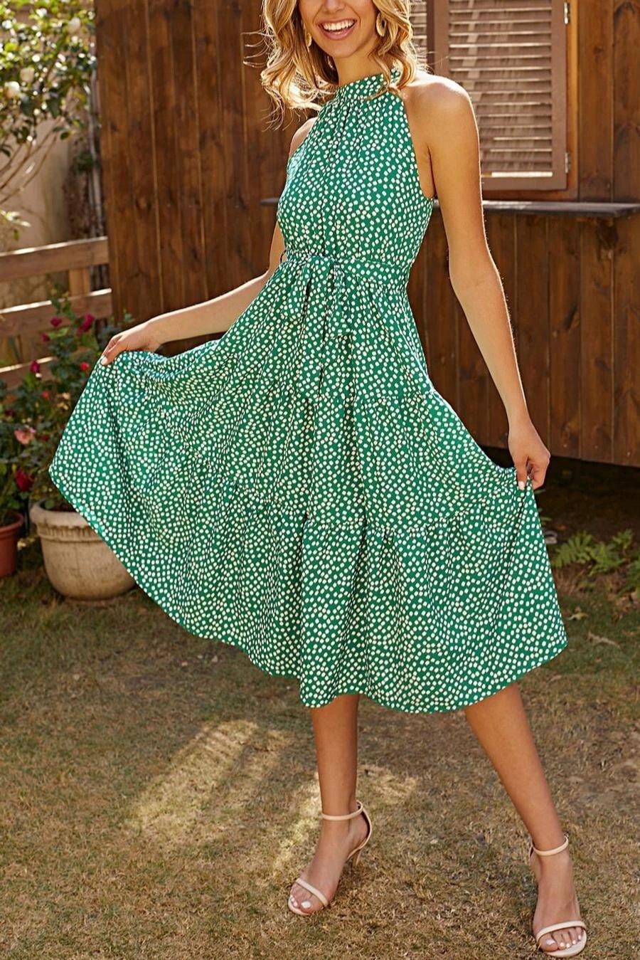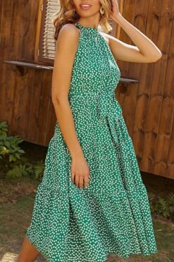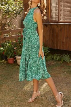 XS-L non-stretch sleeveless floral batch print with belt casual midi dress