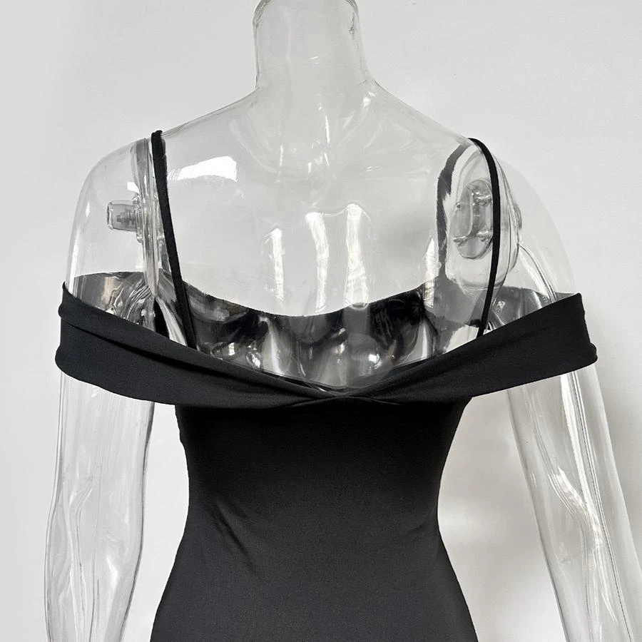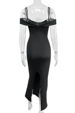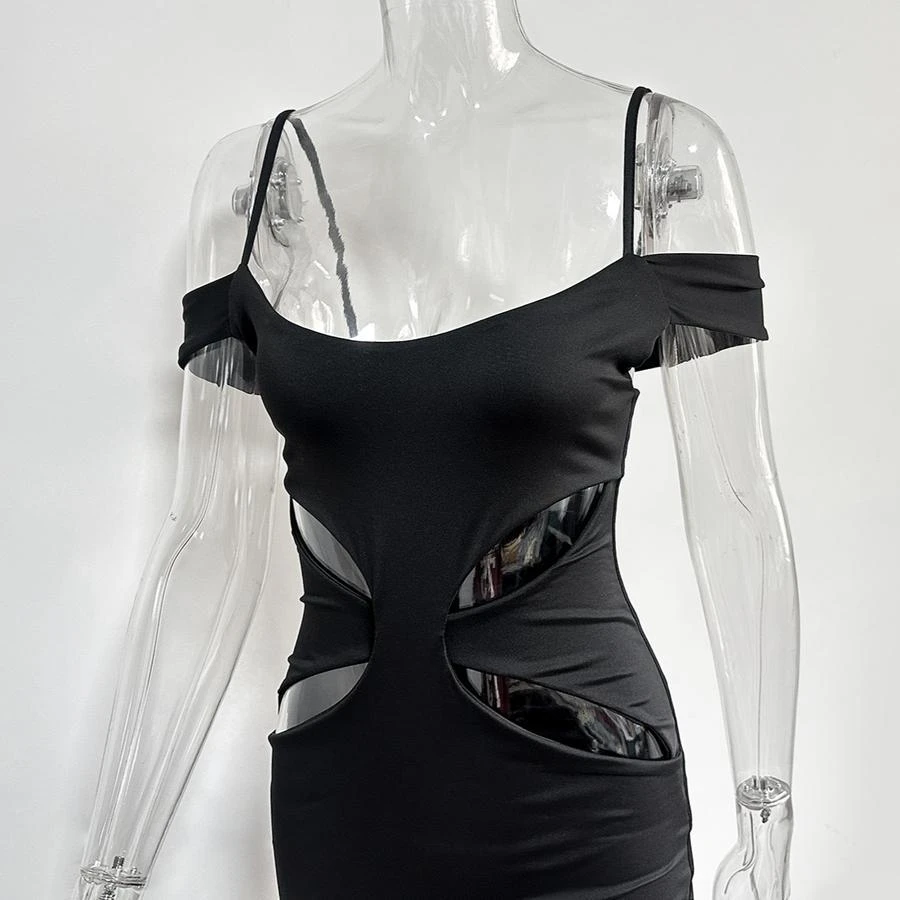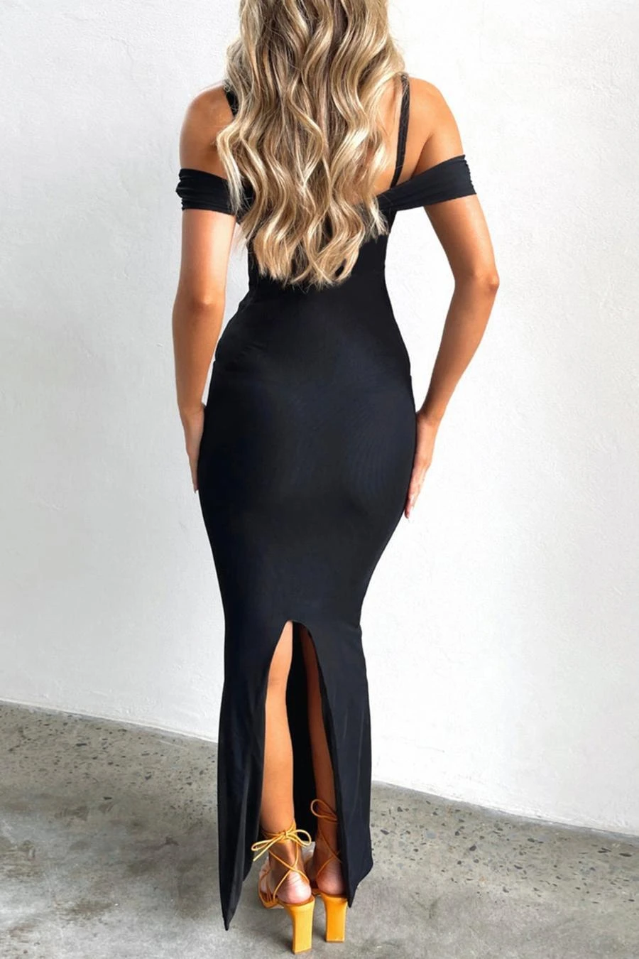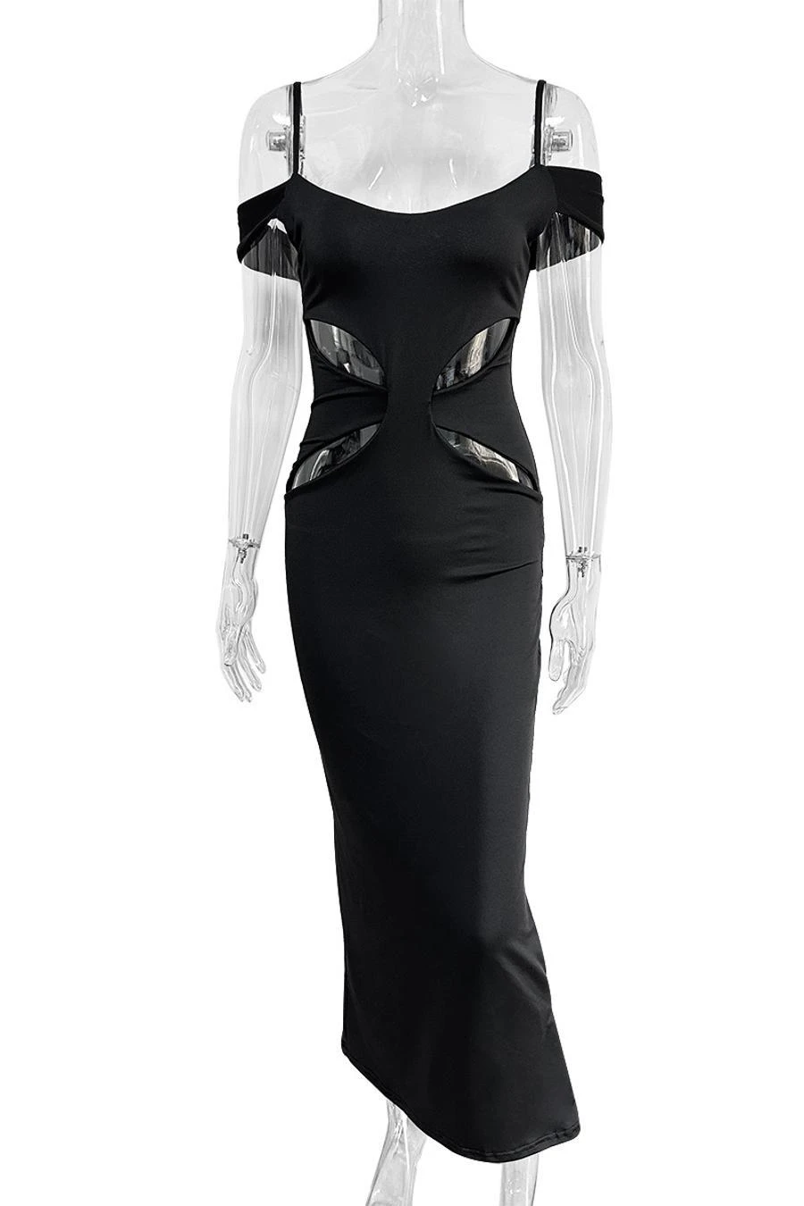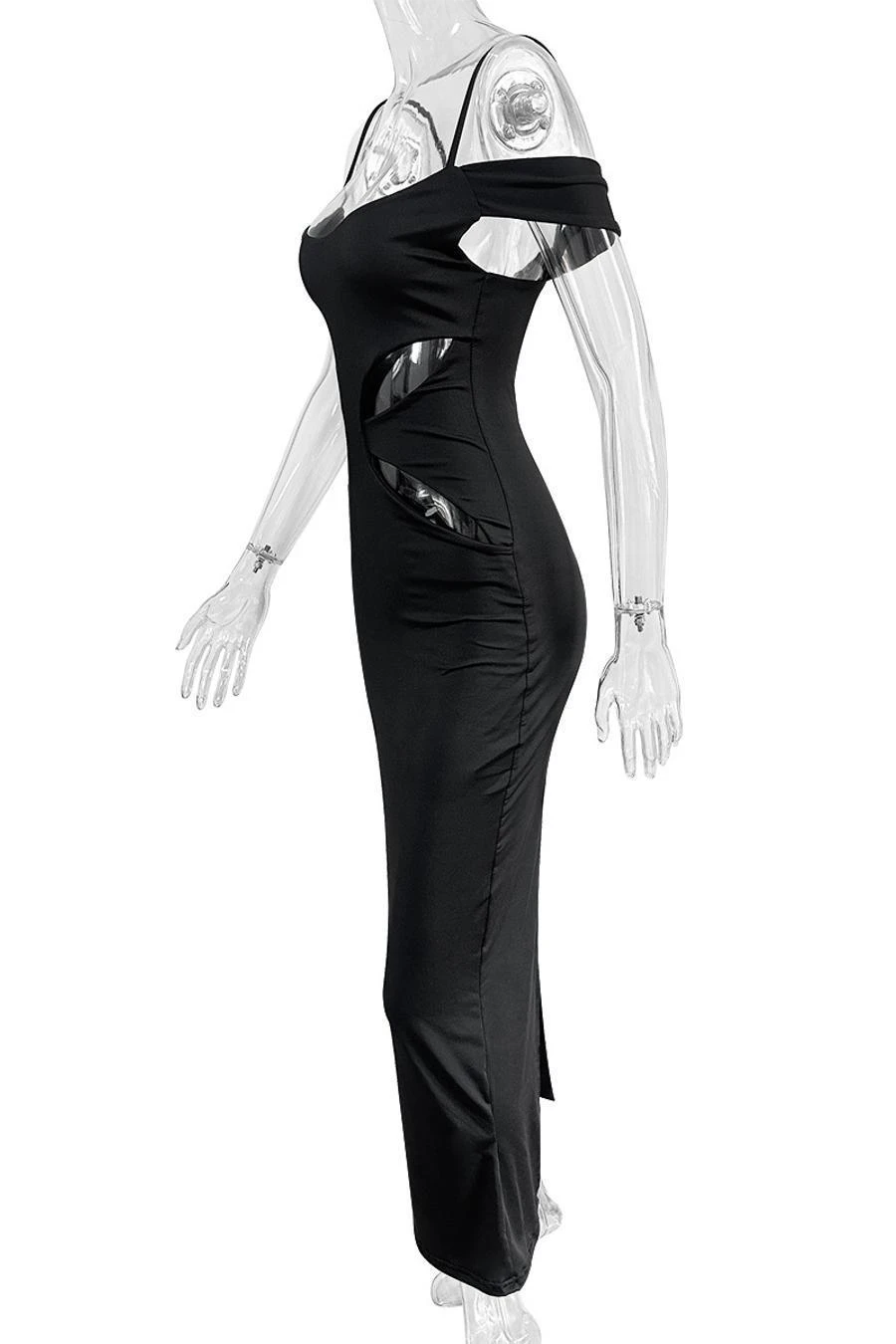 XS-L sexy slight stretch pure color low-cut hollow slit maxi dress