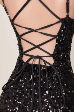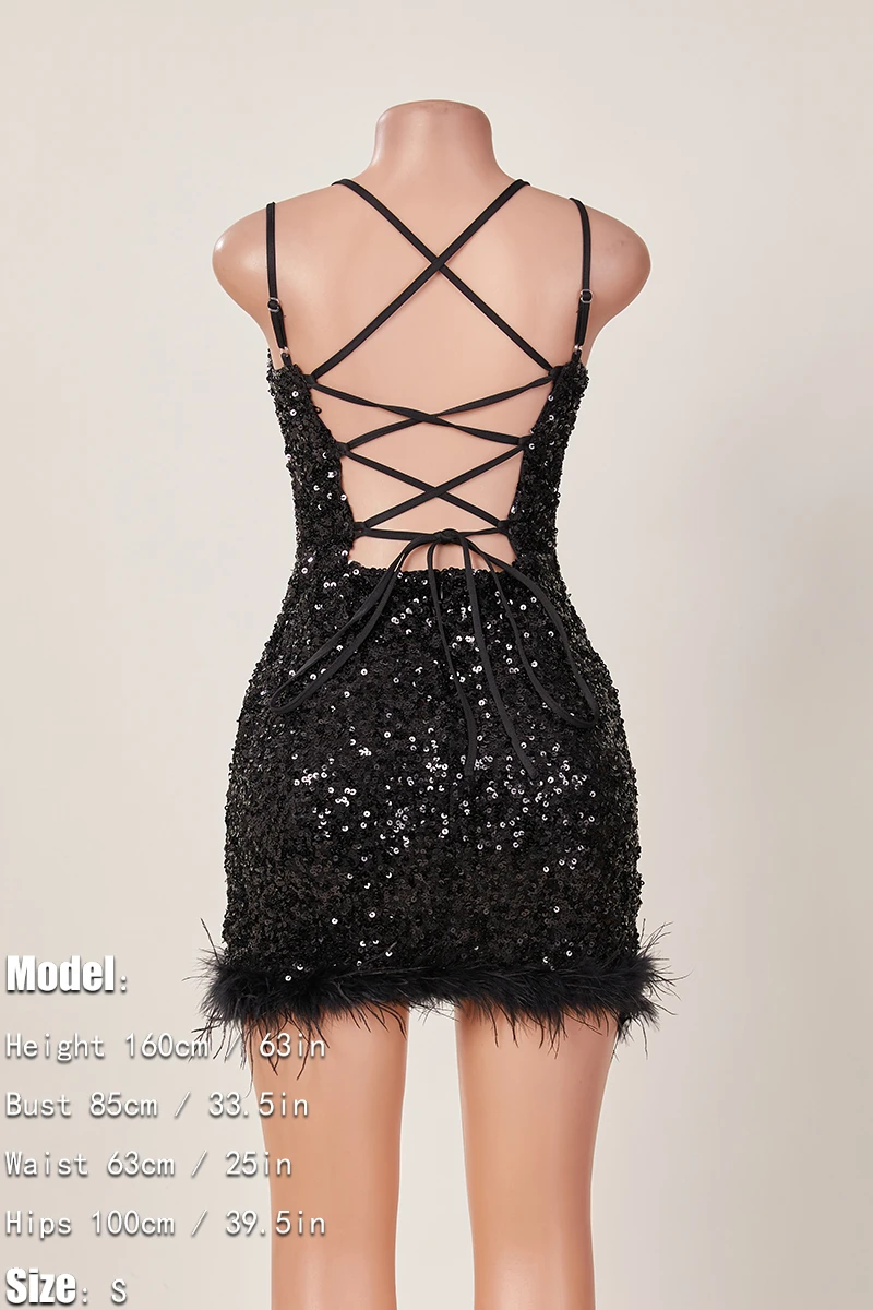 XS-L sexy slight stretch sequin decor backless lace-up plush hem mini dress