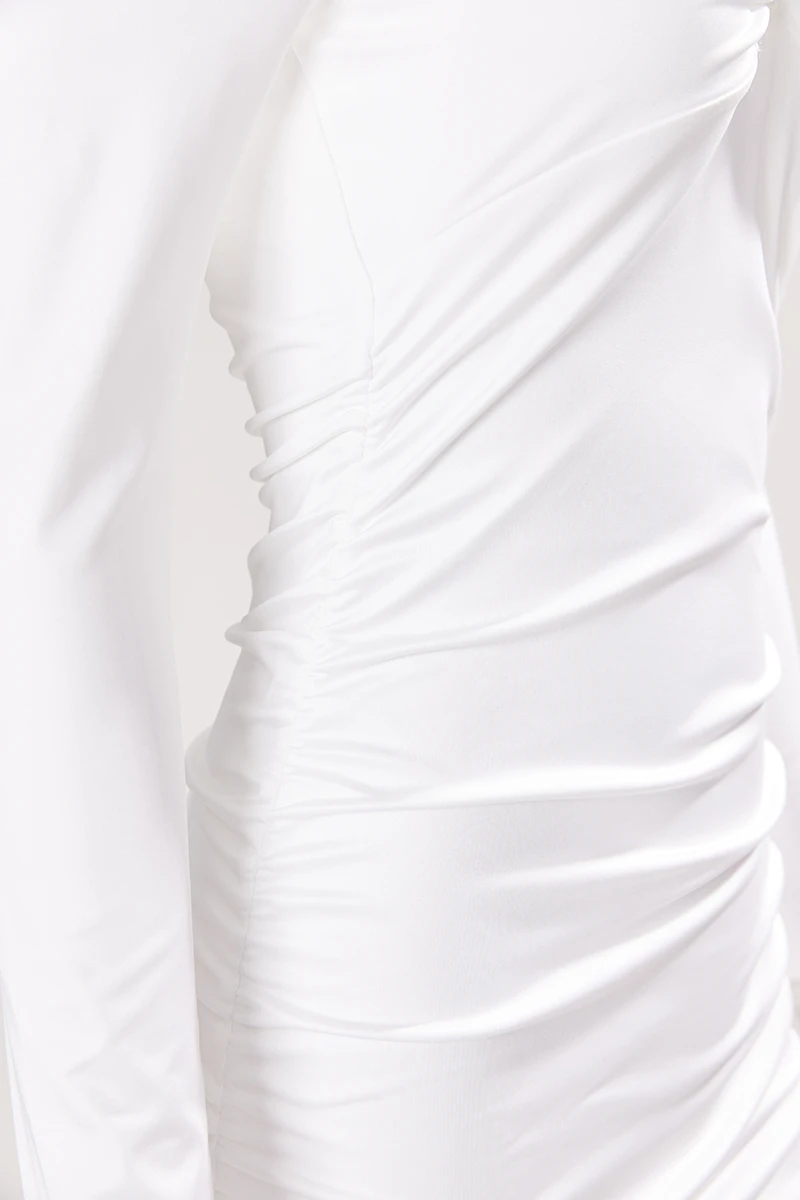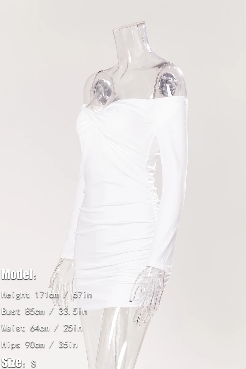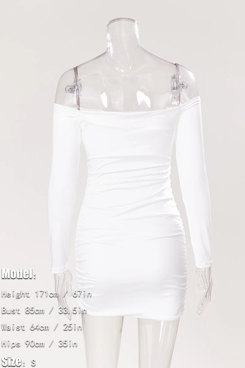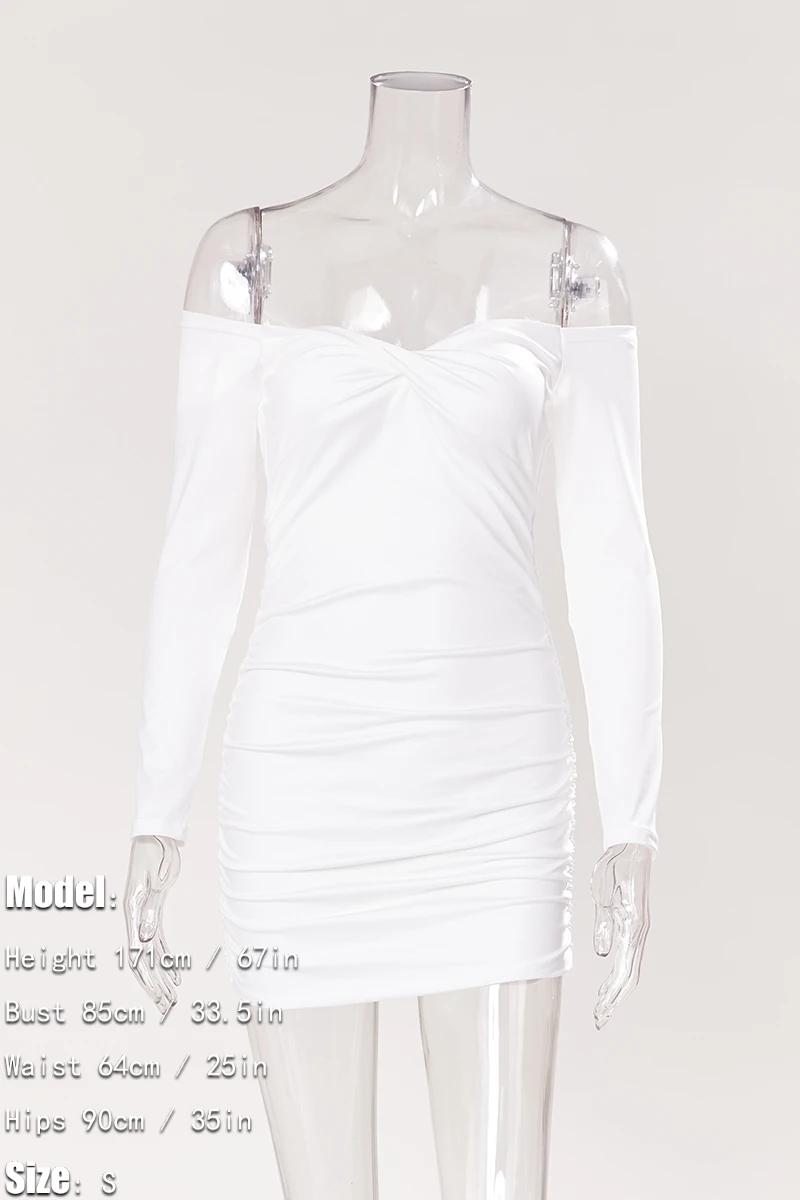 XS-L slight stretch off-the-shoulder kink shirring bodycon sexy mini dress