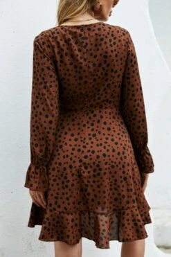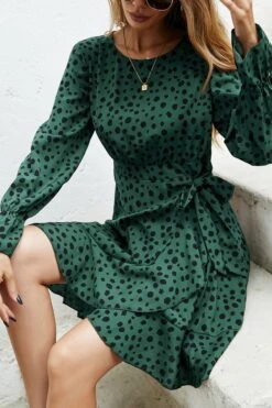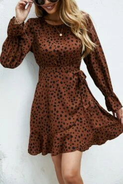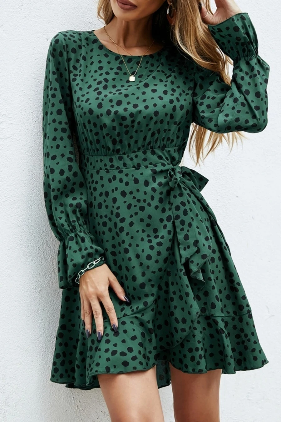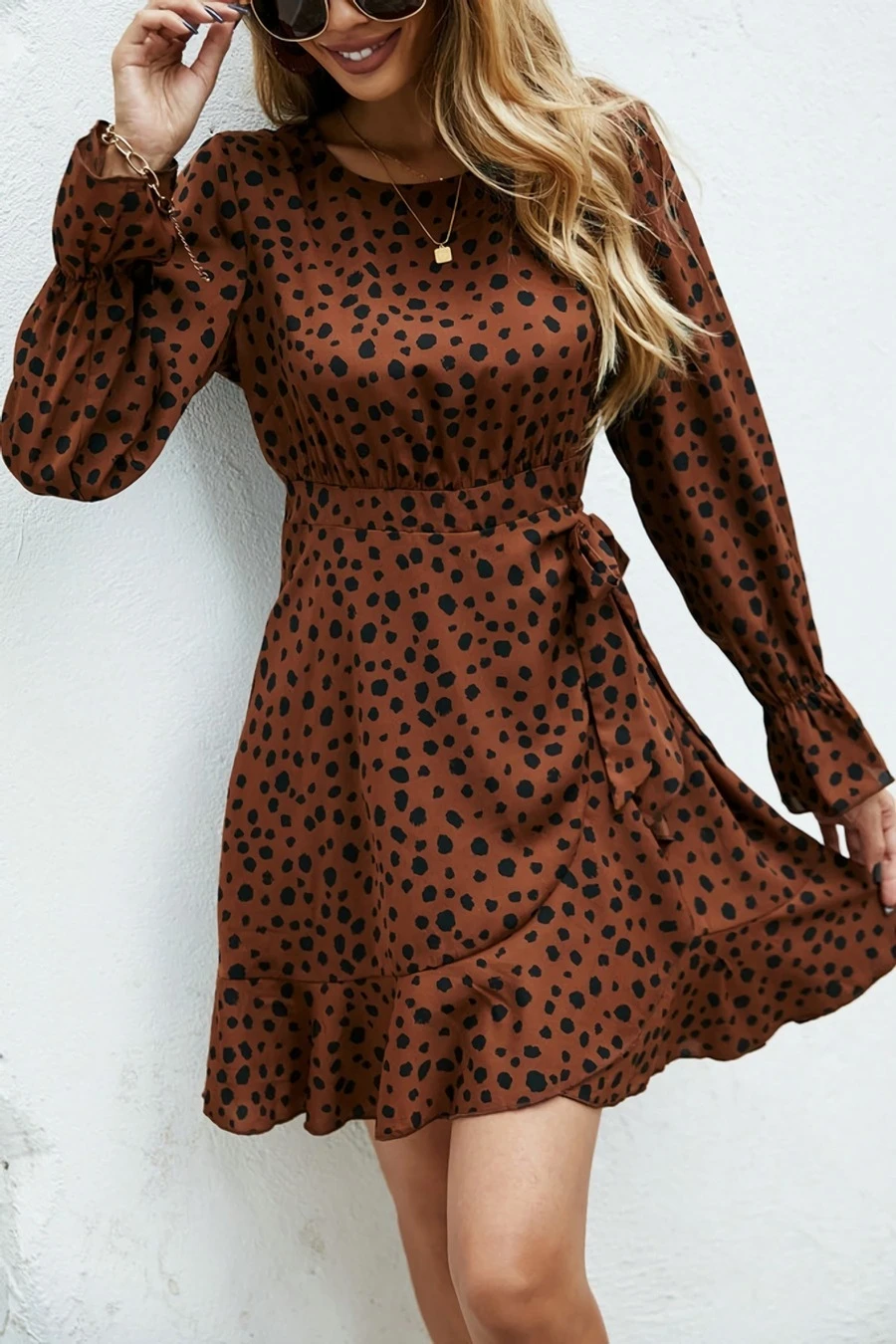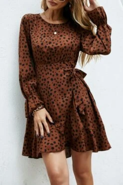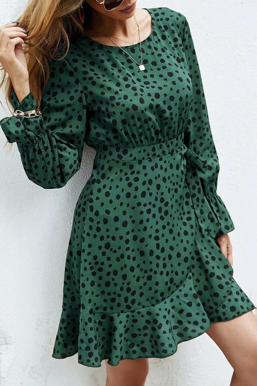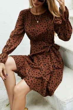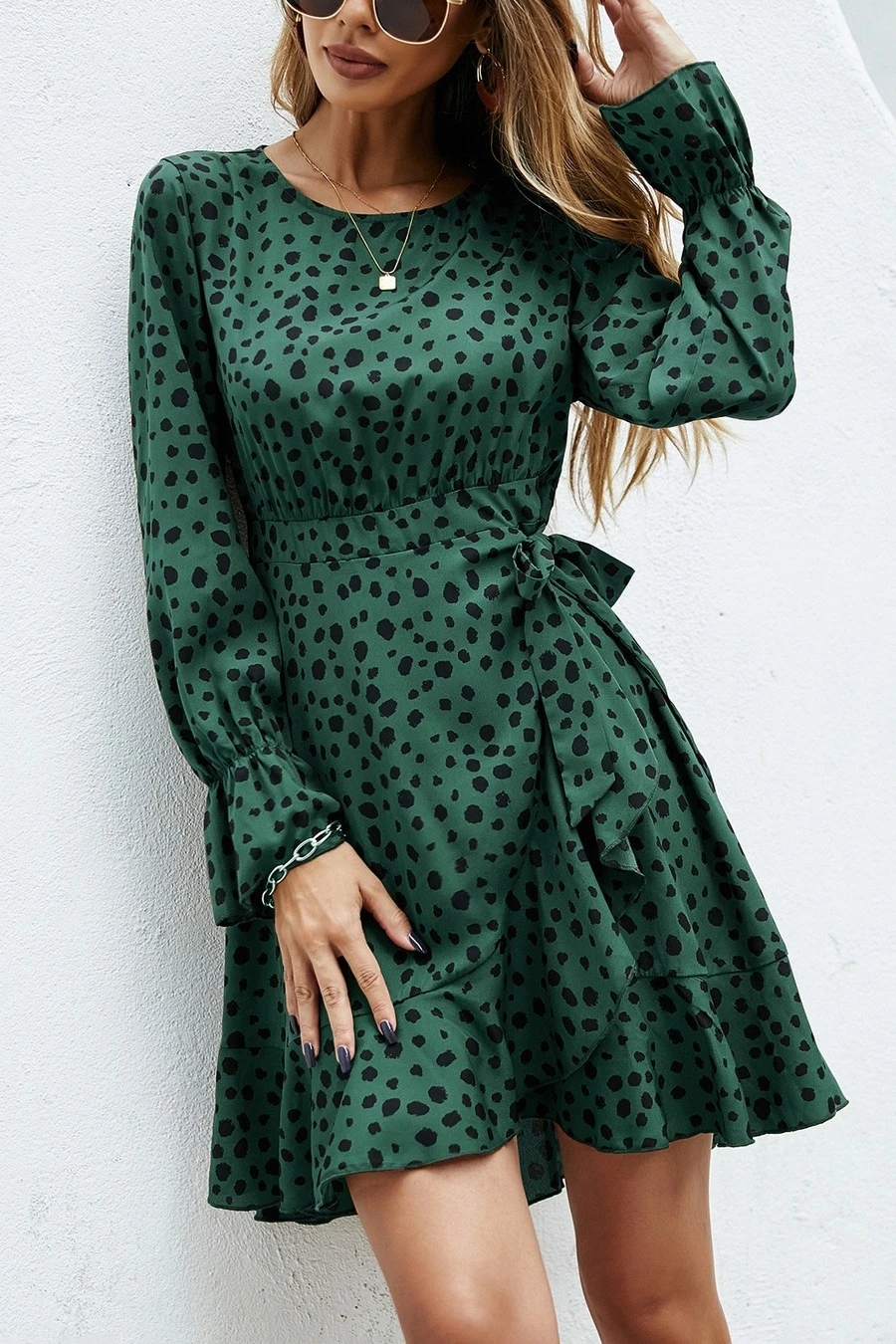 XS-L spring new stylish inelastic polka dot printing lace-up back zip-up casual mini dress