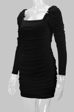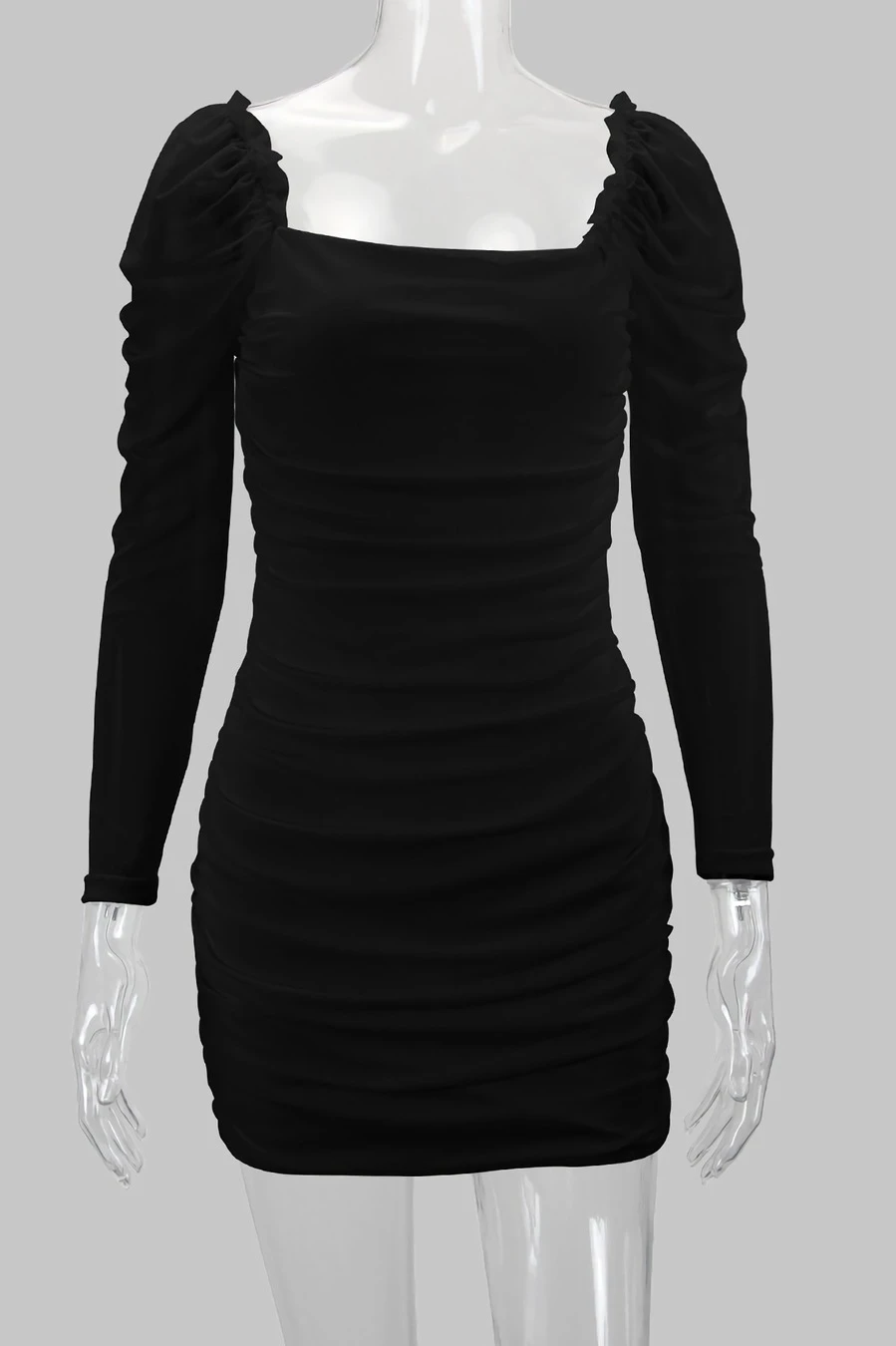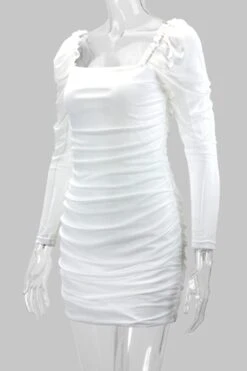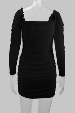 XS-L spring& summer new 2 colors mesh solid color patchwork stretch frill trim shirring bodycon stylish sexy mini dress