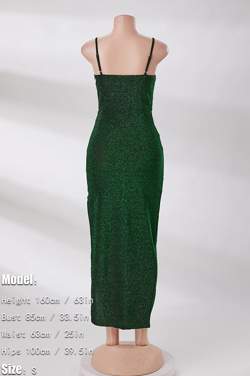 XS-L summer high stretch backless adjustable straps high split sexy glitter maxi dress
