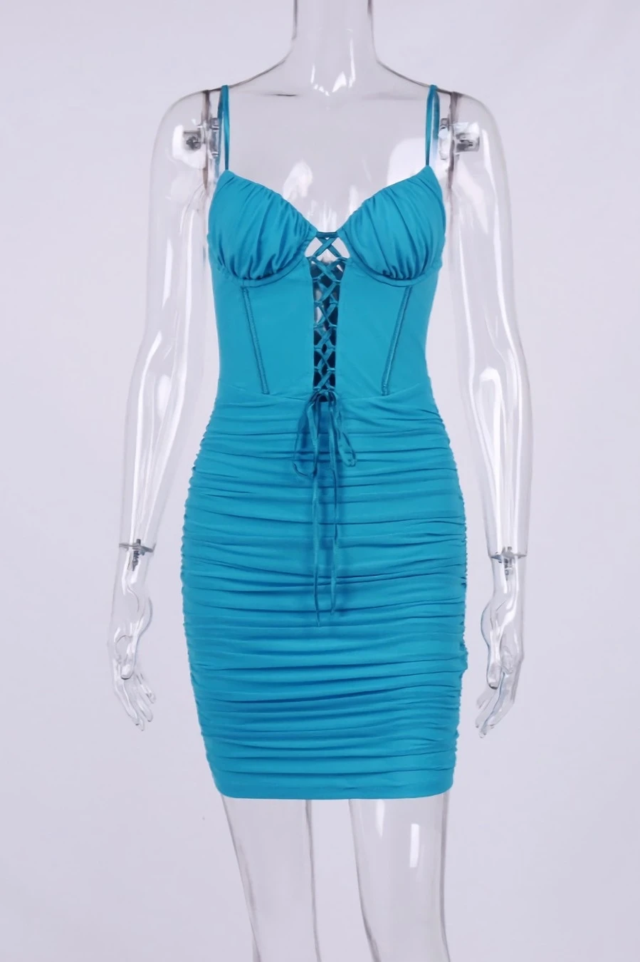 XS-L summer new 2 colors mesh patchwork stretch boned underwire padded sling shirring crossed sling bodycon stylish high quality sexy mini dress(with lining)