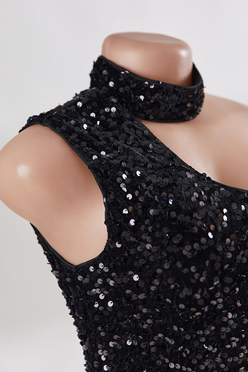 XS-L summer sequin decor stretch sleeveless zip-up back sexy bodycon mini dress