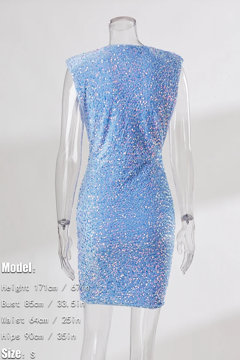 XS-XL two colors sequin decor slight stretch sexy bodycon shiny mini dress
