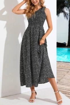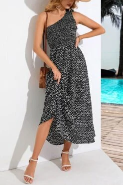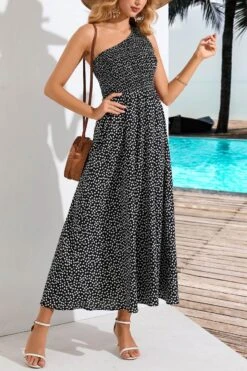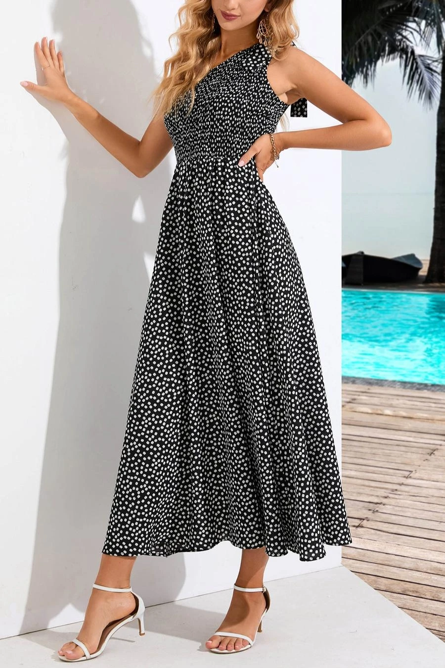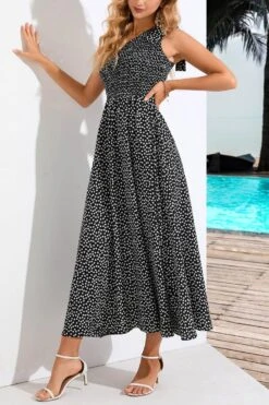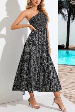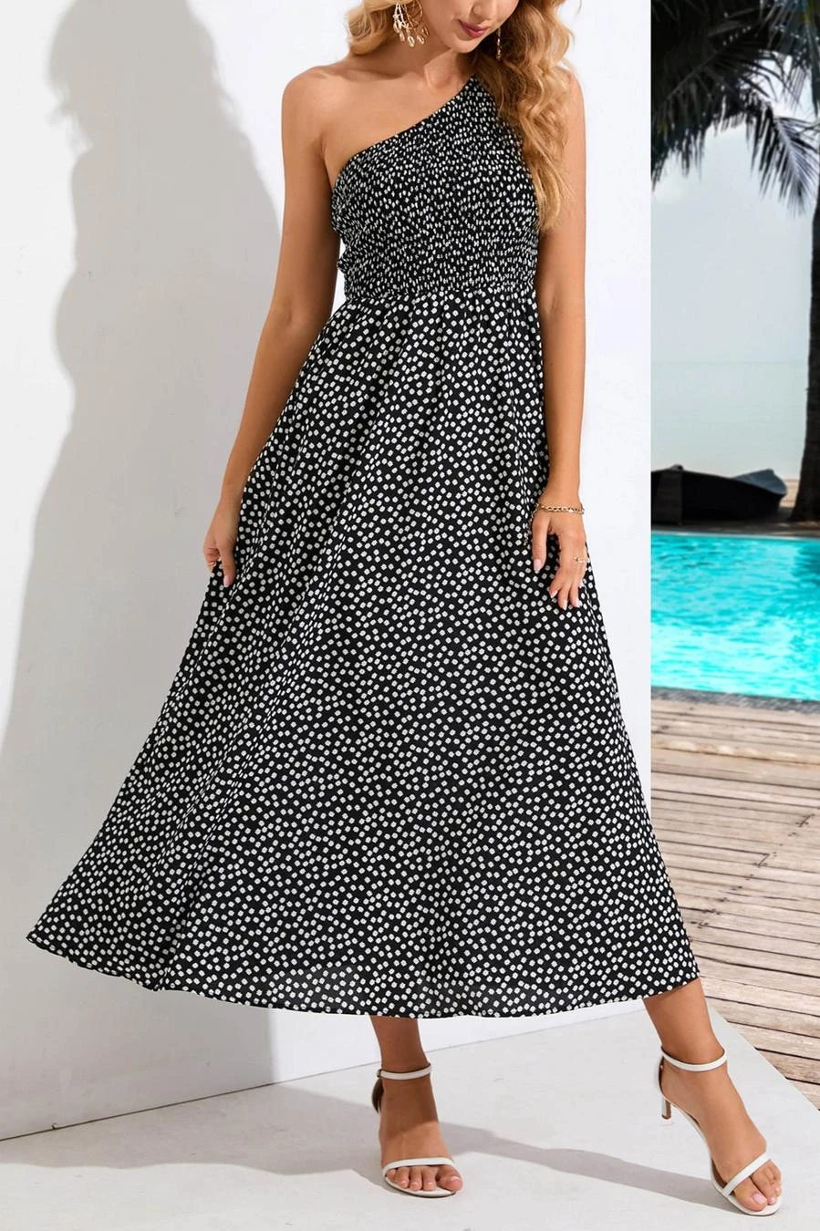 XS-XXL casual vacation plus size slight stretch one shoulder midi dress